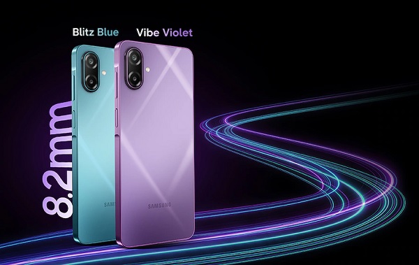Ngoài ra, sản phẩm có thiết kế khá gọn gàng với độ mỏng 8.2mm. Mặt lưng được làm từ vật liệu Glass Fibre Reinforced Polymer (GFRP) giúp tăng độ bền nhưng vẫn giữ trọng lượng nhẹ. Máy cũng đạt chuẩn IP54 cho khả năng chống bụi và kháng nước nhẹ, đồng thời dự kiến sẽ có hai tùy chọn màu sắc là Vibe Violet và Blitz Blue.
