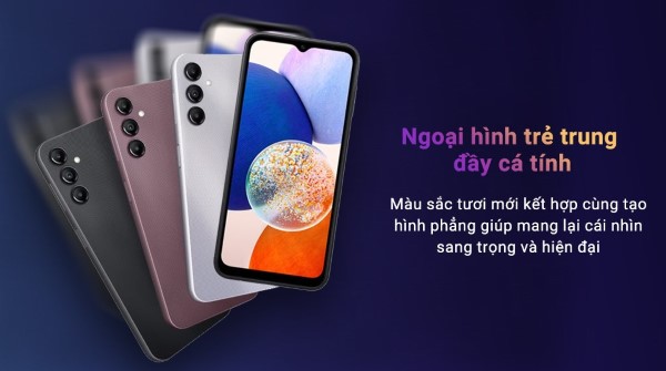 Galaxy A14 5G là chiếc điện thoại sở hữu ngôn ngữ thiết kế khá giống với sản phẩm Galaxy S23 vừa ra mắt. Phần lưng của máy phẳng cùng các ống kính camera tách rời và phần khung hơi bo, cùng các hoa văn 3D giúp cầm nắm tốt hơn. Thiết bị này Sở hữu viên pin 5.000mAh, dày 9.1mm và trọng lượng 205g.