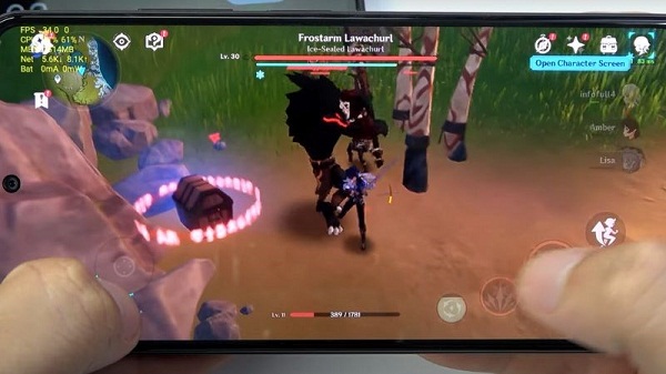 Tuy vậy, khi xảy ra những trận giao tranh liên tục thì FPS có hiện tượng tụt xuống mức thấp nhất là 41 FPS. Chơi game trong khoảng hơn 15 phút, pin điện thoại tụt khoảng 6% và mặt lưng không quá nóng. Phần mặt trước làm bằng kính nên hơi ấm khoảng 41 độ C.