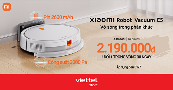 Vacuum E5 là dòng robot hút bụi của Xiaomi giá bán hiện tại 2.490.000 đồng. Đây là robot hút bụi đang gây nhiều chú ý trong cộng đồng những người yêu thích công nghệ. Đặc biệt, trong tháng 7 khi mua sản phẩm này tại các siêu thị Viettel Store áp dụng bán gia dụng bạn sẽ được giảm ngay 300.000 đồng cùng ưu đãi hấp dẫn đi kèm.