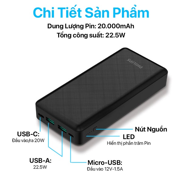 Sau đây là những ưu điểm nổi bật của pin sạc dự phòng Philips 20000mAh mà người dùng nên biết:
