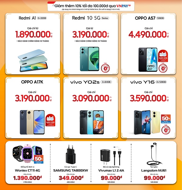 Trong thời gian sắp tới Viettel Store sẽ tiếp tục mở rộng khai trương 6 cửa hàng mới tại Hà Nội và TP. Hồ Chí Minh. Đặc biệt, trong thời gian diễn ra sự kiện khi đến các cửa hàng mới này, Quý khách hàng sẽ có cơ hội mua smartphone, phụ kiện chính hãng giảm tới 9 triệu đồng, Bảo hiểm thiết bị di động ưu đãi 35%.
