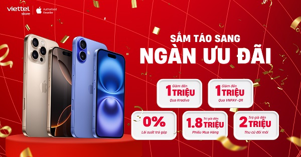 Từ nay đến hết ngày 30/11/2024, Viettel Store triển khai chương trình “Sắm Táo sang – Ngàn ưu đãi” áp dụng với dòng sản phẩm iPhone 16 hot nhất hiện nay với mức trợ giá giảm đến 2.000.000đ, giảm đến 1.000.000đ qua VNPAY-QR. Xem chi tiết ngay!!