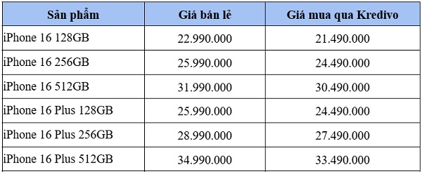 2. Giảm đến 1.000.000đ cho iPhone 16 Series khi tham gia mua trước trả sau qua Kredivo