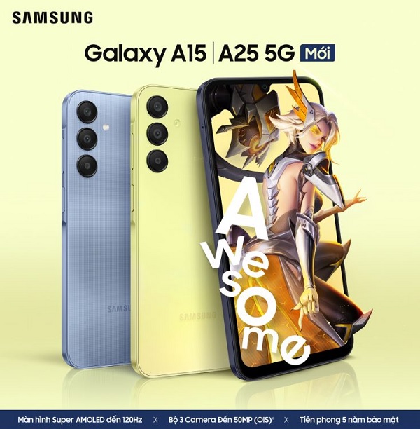 Hôm nay (11/12), Samsung chính thức ra mắt sớm bộ đôi Galaxy A15 và Galaxy A25 5G tại thị trường Việt Nam. Là một trong những dòng điện thoại được tin dùng hàng đầu thế giới, các thiết bị Galaxy A Series đều sở hữu những công nghệ nổi bật “cân mọi thử thách” dẫn đầu phân khúc với mức giá tối ưu. Tiếp nối tinh thần đó, bộ đôi Galaxy A15 và Galaxy A25 5G mang đến những nâng cấp nổi bật về trải nghiệm và hiệu năng, đáp ứng nhu cầu ngày càng cao của người dùng. Đặc biệt, lần đầu tiên trên thị trường, Samsung cam kết cập nhật lâu dài, lên tới 4 phiên bản hệ điều hành (OS) và 5 năm cập nhật bảo mật trên dòng sản phẩm mới ra mắt.