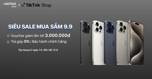 Bạn biết tin gì chưa? Từ ngày 07/09 đến hết ngày 10/09 độc quyền tại Viettel Store – AAR, khi mua iPhone, iPad, AirPods, Apple Watch trên sàn Thương mại điện tử Tiktok khách hàng sẽ được giảm tối đa 3.000.000 đồng. Xem chi tiết ngay để không bỏ lỡ chương trình này nhé!