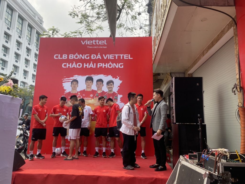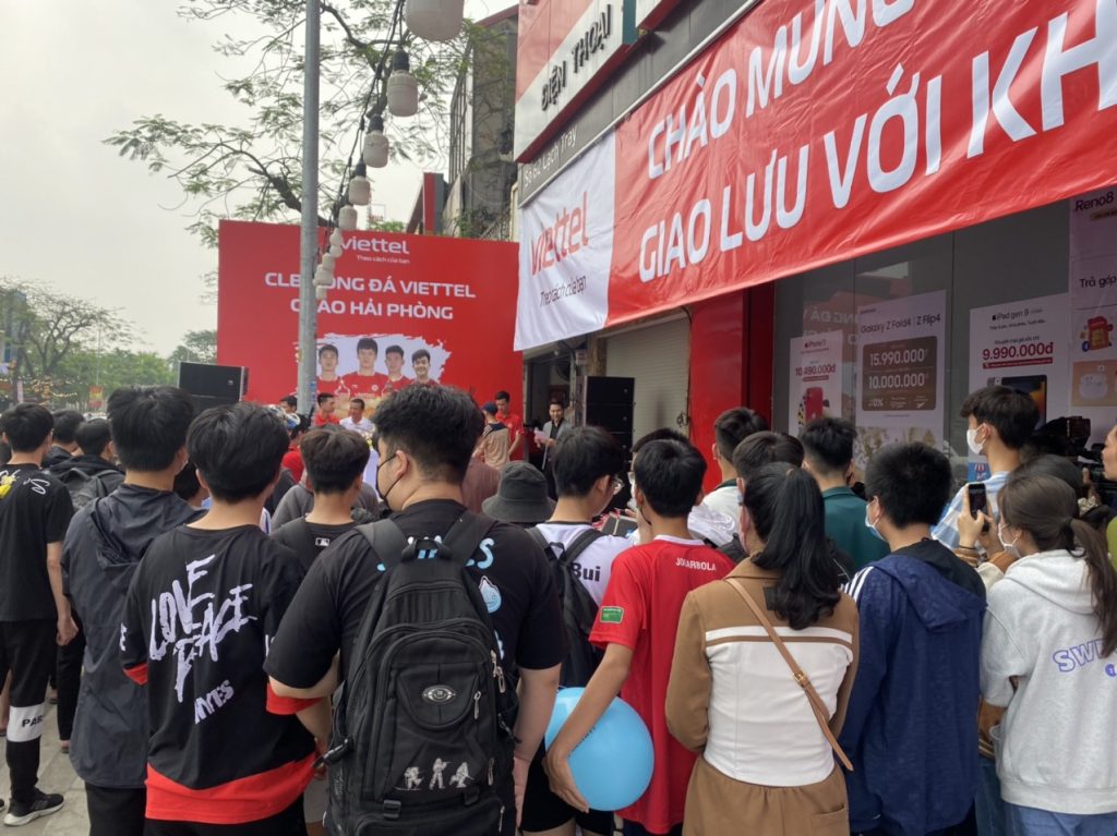 Ngay lúc này tại Viettel Store, các danh thủ như Hoàng Đức, Nhâm Mạnh Dũng và các cầu thủ của Viettel FC đang có màn giao lưu với khán giả Hải Phòng tại Viettel Store 62 Lạch Tray