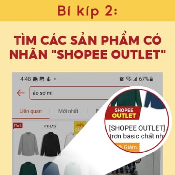 Bí kíp 2: Tìm sản phẩm có gắn logo “Shopee Outlet”