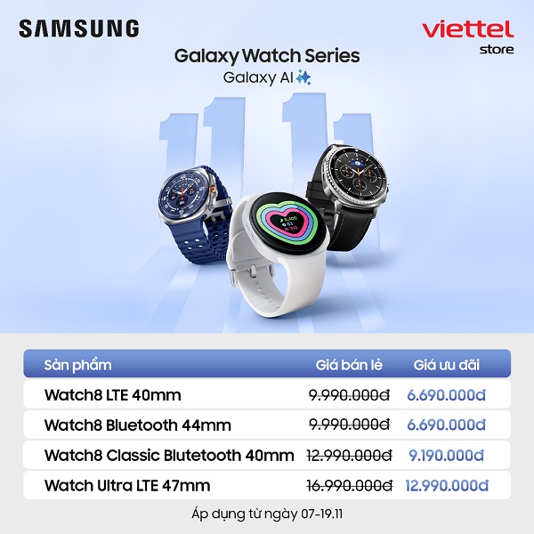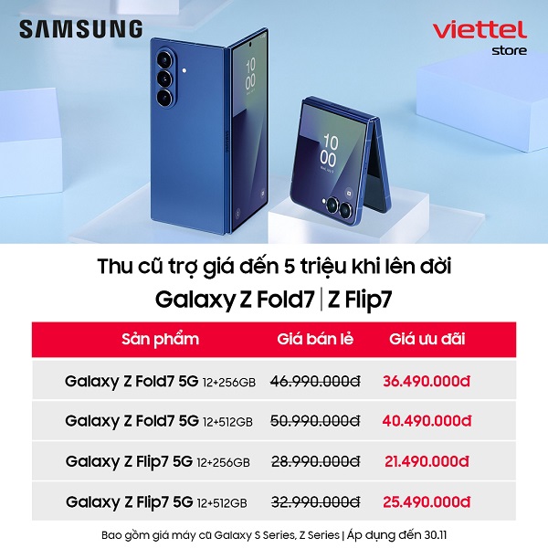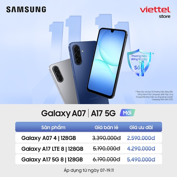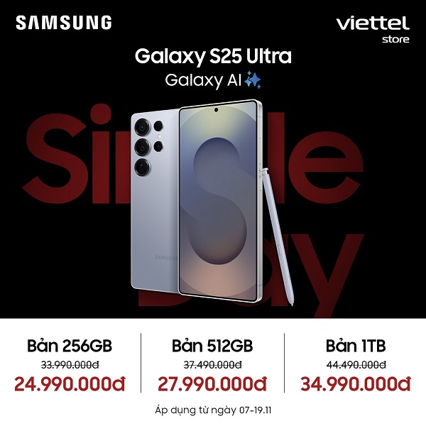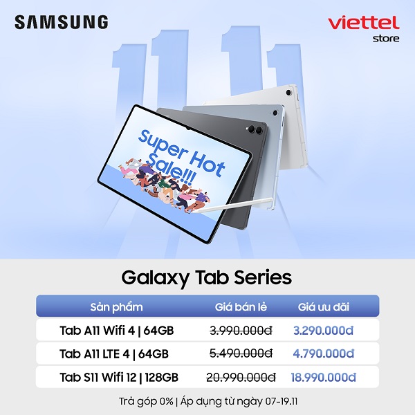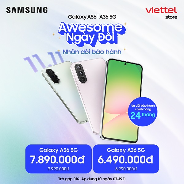 Cơn bão ưu đãi lớn nhất năm chính thức đổ bộ! Chỉ trong dịp 11.11, Viettel Store tung chương trình “Siêu Sale Ngày Đôi” với mức giảm khủng lên tới 11 triệu đồng cho toàn bộ dòng Galaxy của Samsung. Dù bạn mê flagship sang xịn hay smartphone tầm trung hiệu năng cao thì đây chính là cơ hội vàng để “chốt đơn” Samsung với giá hời chưa từng có!