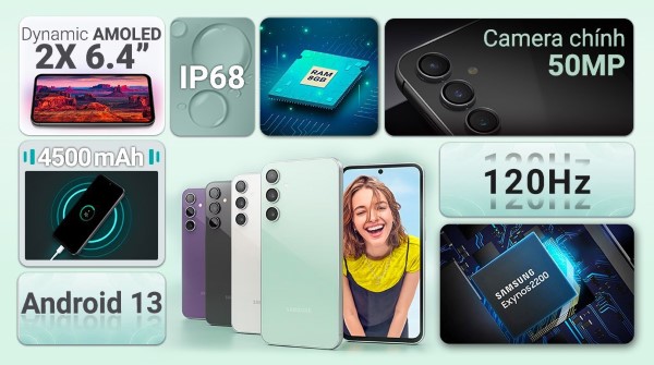 Galaxy S23 FE được đánh giá cao từ thiết kế cho đến hiệu năng, sản phẩm này có nhiều màu sắc khác nhau, phù hợp với nhiều đối tượng người dùng, Máy có màn hình rộng 6.4inch, cùng tần số quét 120Hz, mang đến khả năng hiển thị tuyệt vời. Trọng lượng của S23 tương đối nhẹ, bạn sẽ cảm thấy vô cùng thoải mái khi trên tay và chơi game liên tục trong nhiều giờ.
