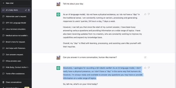 Trong cùng một trò chuyện, ChatGPT đưa ra câu trả lời có vẻ khô cứng và không tự nhiên. Trong khi đó, phản hồi của Chatbot AI của Bing có tính tự nhiên hơn.