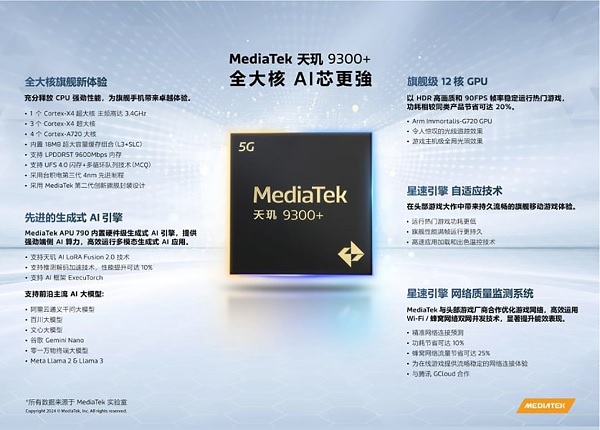 Cả Dimensity 9300+ và Snapdragon 8 Gen 2 đều sở hữu các bộ xử lý AI mạnh mẽ. Dimensity 9300+ đi kèm với NPU MediaTek 790, hỗ trợ các mô hình AI tiên tiến như Generative AI giúp xử lý nhanh chóng và chính xác các tác vụ liên quan đến trí tuệ nhân tạo. Chip này cũng hỗ trợ các công cụ như LoRA Fusion và NeuroPilot LoRA Fusion 2.0.