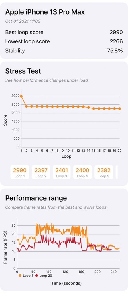 Nhìn kết quả 2 bài test trên có thể thấy hiệu năng CPU và GPU của của chip Apple A15 vượt trội so với Apple A13. Do đó iPhone 13 Pro Max cho hiệu năng nhanh hơn, xử lý mượt hơn.