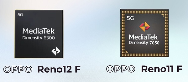 OPPO Reno12 F 5G được hãng tích hợp vi xử lý MediaTek Dimensity 6300, còn OPPO Reno11 F 5G là Dimensity 7050. Cả hai đều là vi xử lý thuộc dòng Dimensity của MediaTek nhưng vẫn có những khác biệt rõ nét về công nghệ và hiệu năng. Cụ thể, MediaTek Dimensity 7050 là phiên bản cao cấp hơn, sản xuất trên tiến trình 6nm, có thể cải thiện tốt hiệu suất, tiết kiệm năng lượng hơn khá nhiều so với 6300.