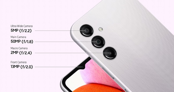 Tuy là phiên bản kế nhiệm nhưng Galaxy A14 4G chỉ có 3 camera sau gồm: camera chính 50MP khẩu độ f/1.8, camera góc siêu rộng 5MP khẩu độ f/2.2 và camera macro 2MP khẩu độ f/2.2. Trong khi đó A13 lại có tới 4 camera sau với: camera chính 50MP khẩu độ f/1.8, camera góc siêu rộng 5MP khẩu độ f/2.2, camera đo độ sâu 2MP và camera macro 2MP khẩu độ f/2.2.