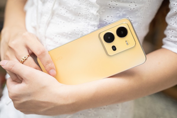 Trong khi đó, Vivo V25e lại sở hữu thiết kế tối giản, trẻ trung nhưng không kém phần thời thượng. Ấn tượng nhất trong thiết kế của máy là ở mặt lưng được làm bằng kính Fluorite AG với khả năng nổi màu sắc linh hoạt giúp máy trở nên đa sắc hơn. Cùng với đó là cảm biến camera được đặt ở trong khung tạo thành một điểm nhấn cho mặt lưng.