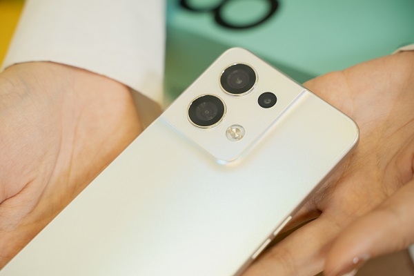 Điểm nổi bật nhất trong thiết kế Reno8 5G là cụm camera khác biệt hoàn toàn so với bản tiền nhiệm, lớn hơn và lồi hơn. Chính thiết kế này lại khiến Reno8 5G không mềm mại như đối thủ Galaxy A54 5G.