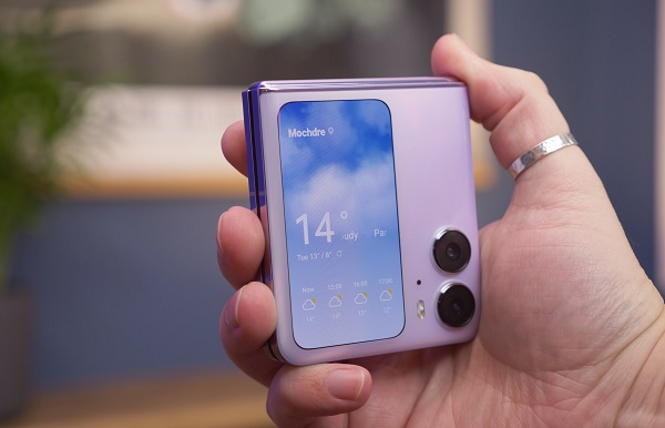 Quay sang mặt trước, Galaxy Z Flip5 và OPPO Find N2 Flip đều có thiết kế đục lỗ là nơi chứa camera selfie. Sự khác biệt của chúng nằm ở mặt sau khi smartphone gập OPPO được trang bị màn hình phụ với dạng hình chữ nhật đứng có kích thước 3.26 inch. Còn Z Flip5 có phần vượt trội hơn khi sở hữu màn hình phụ dạng hình thư mục độc đáo cùng kích thước lớn hơn là 3.4 inch, giúp bạn làm được nhiều việc tiện ích hơn.