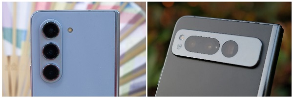 Đều là các siêu phẩm nên camera Galaxy Z Fold5 và Google Pixel Fold rất được chú trọng. Samsung trang bị cho Z Fold5 hệ thống 5 camera bao gồm: camera chính 50MP, camera góc siêu rộng 12MP, camera tele 10MP hỗ trợ chụp zoom quang 3X, camera selfie 10MP trên màn hình phụ và camera 4MP ẩn trong màn hình chính. Với hệ thống camera này người dùng sẽ có được những trải nghiệm vô cùng tuyệt vời.