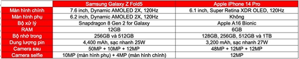 So sánh Samsung Galaxy Z Fold5 và iPhone 14 Pro
