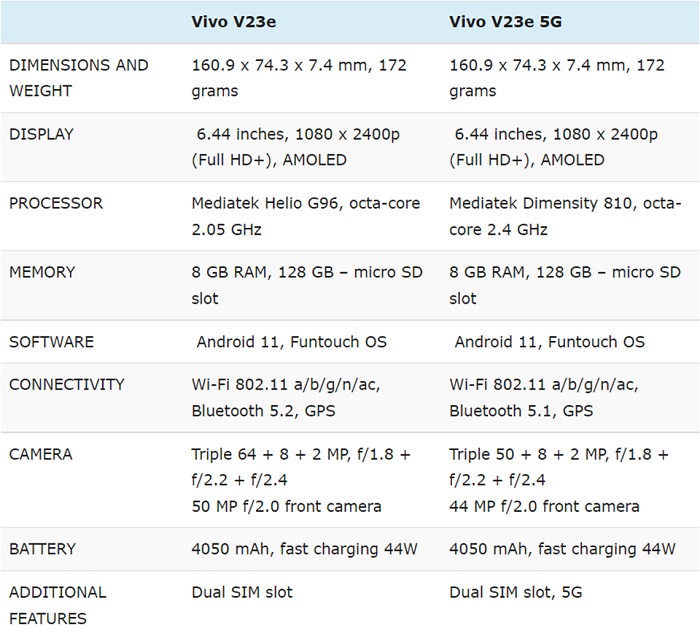 Vừa qua, Vivo đã chính thức tung ra mẫu smartphone đầu tiên trong dòng V23 tại thị trường Việt Nam. Sản phẩm có tên gọi là V23e 4G với camera selfie 50MP ấn tượng. Tuy nhiên, vài ngày sau hãng lại tiếp tục giới thiệu phiên bản 5G của mẫu smartphone này với thông số kỹ thuật hơi khác một chút. Vậy đặt lên bàn cân so sánh Vivo V23e 4G với Vivo V23e 5G thì đâu là sự khác biệt. Câu trả lời sẽ có trong bài viết sau đây.