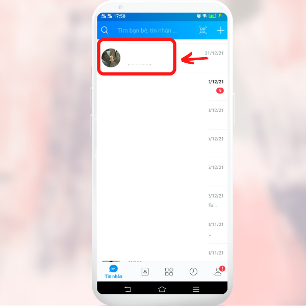 Bước 1: Trước tiên bạn truy cập vào ứng dụng Zalo. Tiếp theo, nhấn chọn vào một cuộc trò chuyện bất kỳ trên Zalo của bạn.