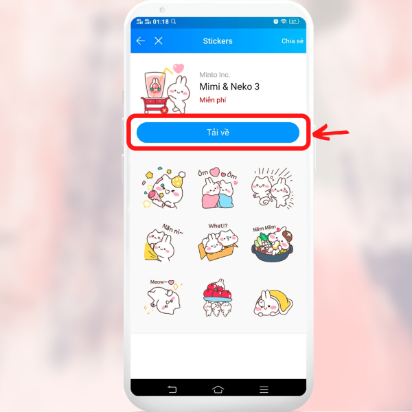 Bước 3: Tại đây, bạn nhấn chọn vào bộ sticker mà mình muốn tải về rồi nhấn Tải xuống. Sau khi tải xuống thành công, bộ nhãn dán đó sẽ xuất hiện trong cửa hàng nhãn dán trên zalo của bạn và sẵn sàng để sử dụng.
