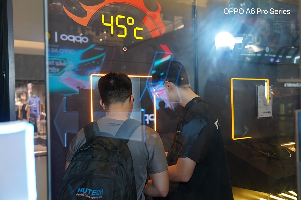 Sau phần trình diễn, khu trải nghiệm tiếp tục thu hút đông đảo người tham dự. Tại đây, OPPO A6 Pro tiếp tục chứng minh danh xưng “Vua năng lượng” bằng những công nghệ hàng đầu: pin lớn, sạc nhanh, chống nước bụi, màn hình AMOLED 120Hz siêu sáng và chip MediaTek tối ưu hiệu suất.