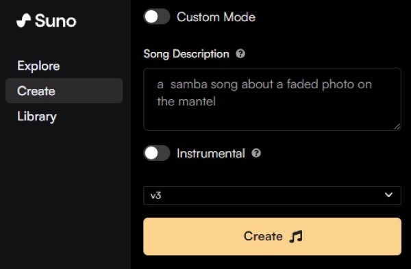 Bước 3: Sau khi quá trình login thành công > Quay trở lại giao diện trang app.suno.ai, chọn vào mục “Create” và chọn v3.
