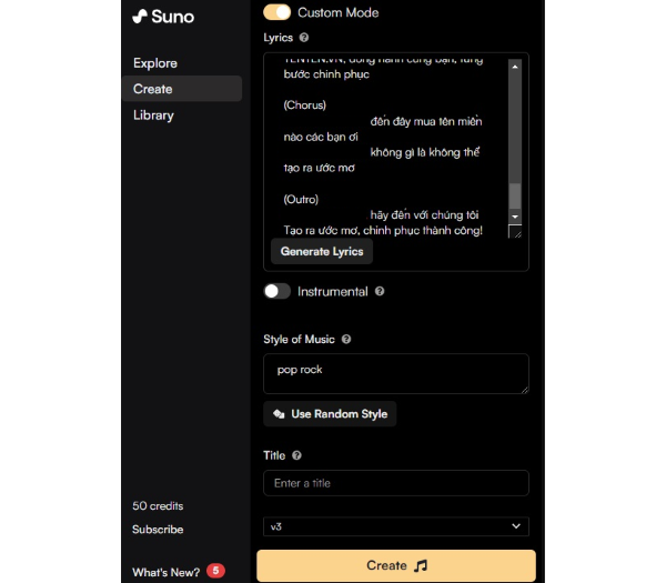 - Hỗ trợ nhiều phân loại ngôn ngữ: Suno AI cho phép hỗ trợ nhiều ngôn ngữ khác nhau, trong đó có bao gồm tiếng Việt.