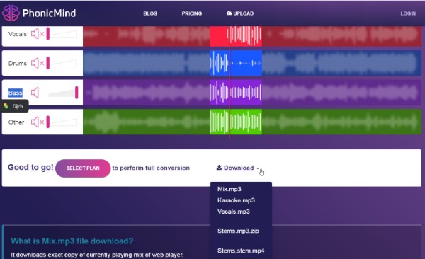 Bên cạnh Lalal.Ai, PhonicMind là một dịch vụ trực tuyến khác giúp người dùng tách giọng hát và nhạc cụ khỏi bản nhạc. Nền tảng này cung cấp cả phiên bản có lời và không lời để người dùng lựa chọn. Tuy nhiên, đây là dịch vụ có phí, với bản dùng thử miễn phí bị giới hạn thời gian tách lời khỏi nhạc online. Dù vậy, chất lượng tách giọng của PhonicMind vẫn được đánh giá cao.