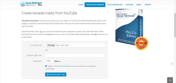 Bước 3: Nhập mã xác nhận vào ô “Verification”, sau đó nhấn “Create Karaoke Track” để hệ thống bắt đầu xử lý.