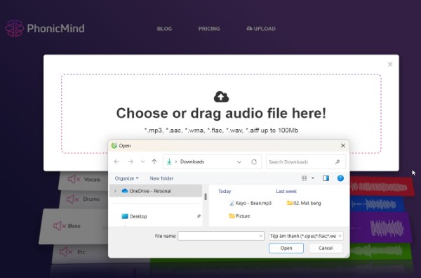 Bước 2: Tại giao diện chính, nhấn Browse my files, sau đó chọn file nhạc cần xử lý từ cửa sổ Open hiện ra. Nhấn Open để tải file lên.
