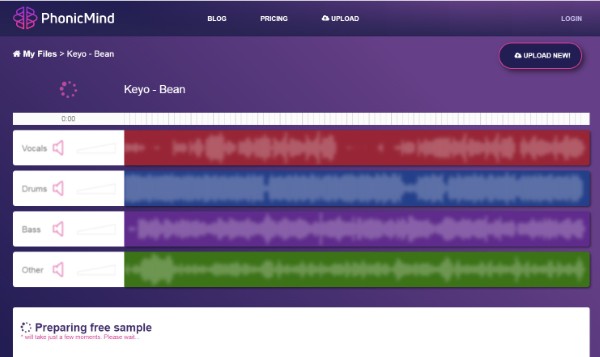 Bước 3: Sau khi tải lên, hệ thống sẽ tự động thực hiện quá trình tách giọng khỏi bản nhạc.