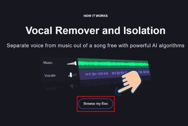 Bước 1: Truy cập trang web Vocal Remover, chọn “Browse my files” và tải lên bài hát bạn muốn xử lý. Hệ thống sẽ bắt đầu quá trình tách nhạc.