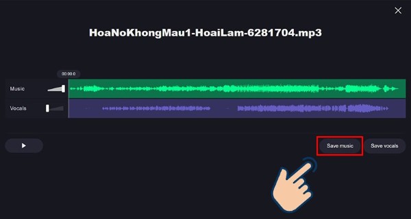 Bước 2: Sau khi hoàn tất, nhấn “Save music” để tải phần nhạc nền đã tách về máy.