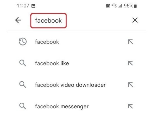 Bước 4: Nhập từ khóa “Facebook” vào ô tìm kiếm và nhấn tìm. Để đảm bảo kết quả hiển thị chính xác, hãy gõ đúng tên ứng dụng. Facebook có biểu tượng màu xanh dương với chữ “F” màu trắng, bạn cần kiểm tra kỹ để tránh nhầm lẫn với các ứng dụng khác cùng nhà phát triển.