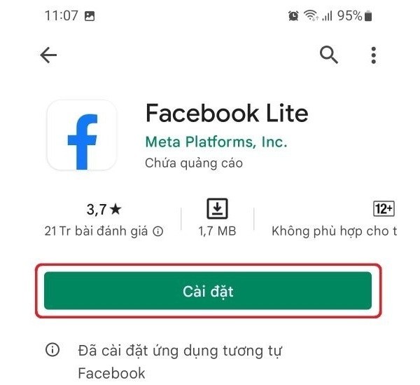 Bước 3: Chọn Cài đặt để bắt đầu quá trình tải xuống và thiết lập ứng dụng trên điện thoại.