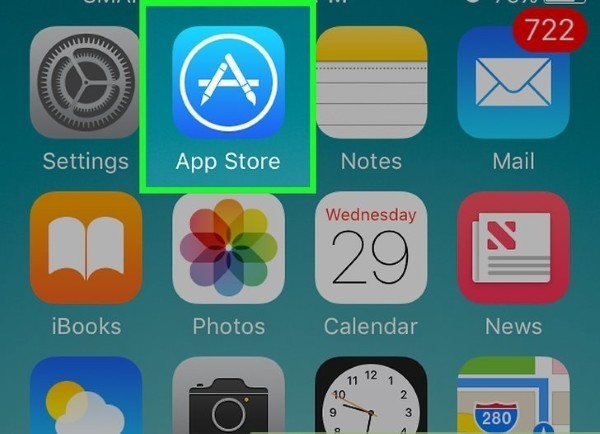 Bước 1: Mở App Store trên điện thoại. Biểu tượng của ứng dụng này có nền xanh dương và chữ “A” màu trắng.