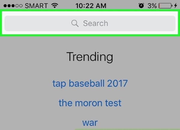 Bước 3: Chạm vào thanh tìm kiếm hiển thị ở phía trên sau khi vào mục tìm kiếm.