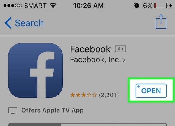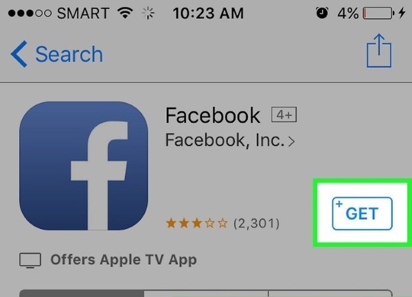 Bước 5: Nhấn vào nút Get, sau đó chọn Install. Nếu trước đó bạn đã tải Facebook, nút này sẽ hiển thị là Open thay vì Get.