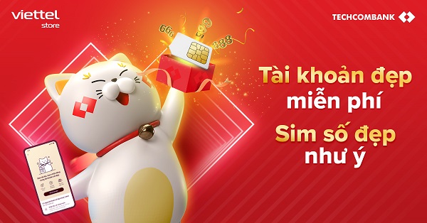 Từ 08/04/2023, khi khách hàng tải ứng dụng và mở tài khoản ngân hàng Techcombank tại hệ thống các siêu thị của Viettel Store trên toàn quốc sẽ được nhận ngay voucher giảm giá 30% khi mua SIM số đẹp kèm gói cước Data Free lên tới 150.000đ.