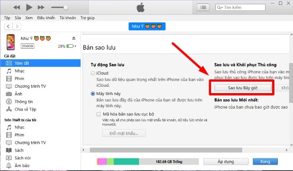 Sao lưu danh bạ trên iTunes