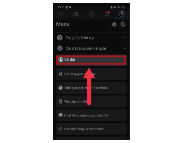 Bước 2: Chọn Cài Đặt.