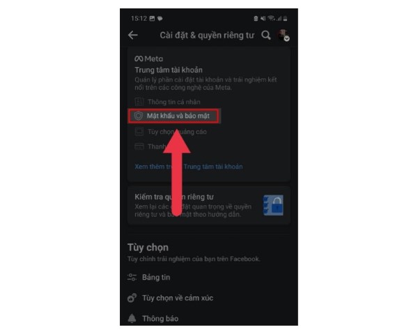 Bước 3: Chọn tiếp vào Mật khẩu và bảo mật.