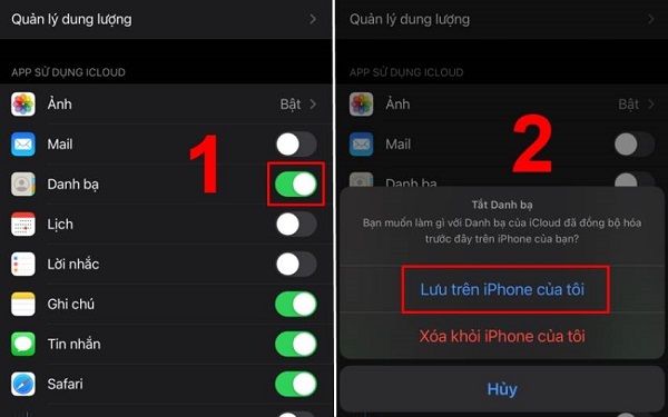 Bước 3: Sau khi người dùng đã đăng nhập thành công vào tài khoản, lúc này hãy nhấn vào mục “Danh bạ” để tiến hành đồng bộ lại tất cả các thông tin liên hệ trên Gmail về điện thoại iPhone. Thời gian chờ thực hiện sẽ mất vài giây cho đến vài phút. Sau đó, người dùng hãy nhấn chọn vào nút “Lưu” để chờ cho hệ thống hoàn tất quá trình này là đã xong rồi.