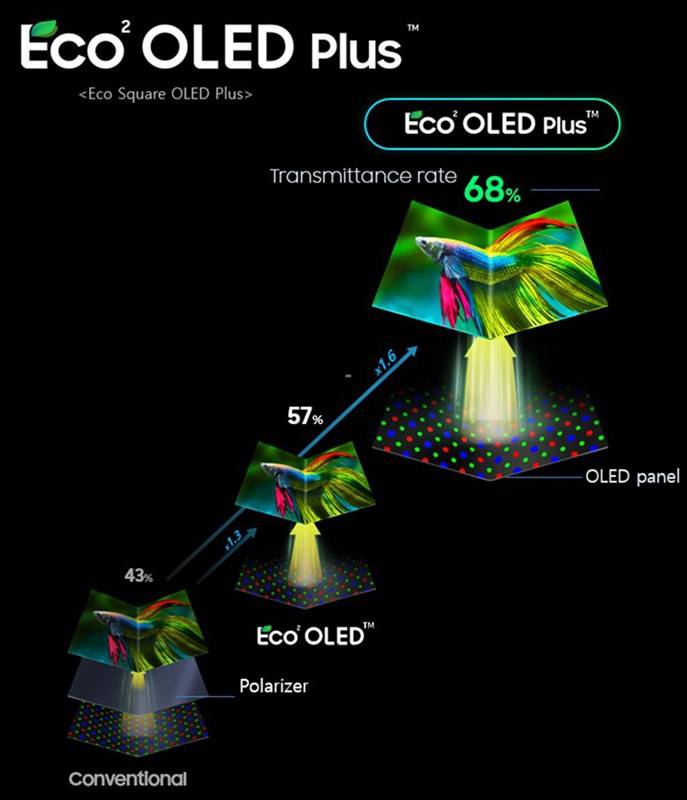 Dựa trên công nghệ tấm nền OLED phân cực tích hợp của Samsung, tấm nền Eco2 OLED Plus trên phiên bản mới Galaxy Z Fold4 có tốc độ truyền cải thiện từ tấm nền Eco OLED Plus trên phiên bản tiền nhiệm Galaxy Z Fold3. Tốc độ truyền tăng đối với các điểm ảnh màu đỏ và xanh lam giúp tăng cường độ sáng cảm nhận được. Đồng thời, tấm nền mới cũng có khả năng tiết kiệm năng lượng hơn.