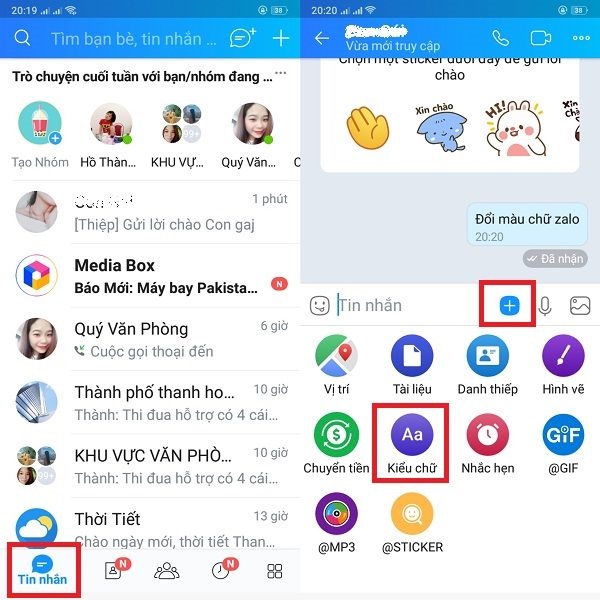 Bước 1: Mở ứng dụng Zalo trên điện thoại iPhone >> vào mục Tin nhắn >> Sau đó hãy mở bất kỳ một cuộc trò chuyện nào mà người dùng muốn gửi tin nhắn >> Nhấn vào ô soạn tin nhắn, người dùng sẽ thấy biểu tượng “Đính kèm” ở bên phải >> Nhấn vào phần đính kèm >> chọn biểu tượng 2 chữ Aa đó chính là Kiểu chữ.