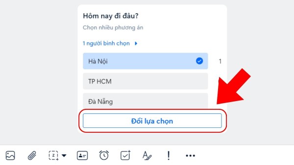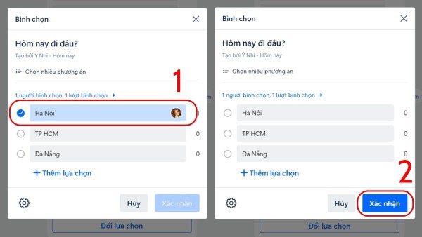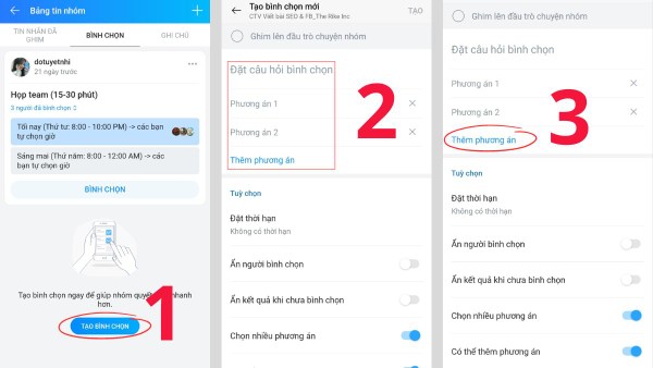 – Các phương án bình chọn: Là những lựa chọn để mọi người đưa ra quyết định, chẳng hạn như: “Hôm nay”, “Ngày mai”, “Thứ 5”, “Thứ 6”, “9:00 sáng”…