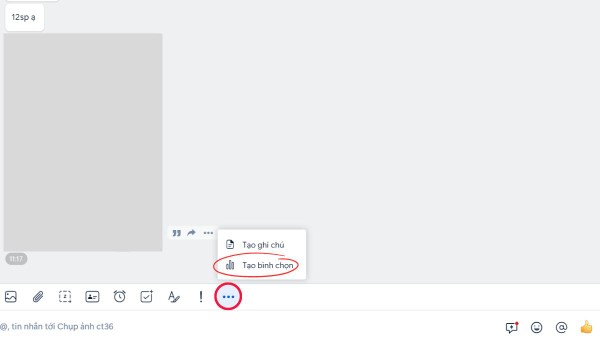 Bước 1: Nhấp vào biểu tượng “dấu ba chấm” nằm phía trên khung trò chuyện, sau đó chọn “Tạo bình chọn”.
